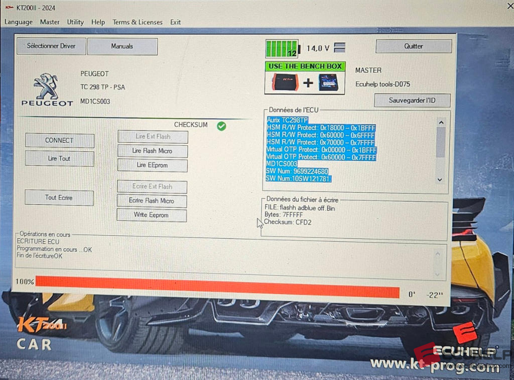 ECUHELP KT200II ECU Programmer is confirmed to Bench read and write Peugeot MD1CS003.